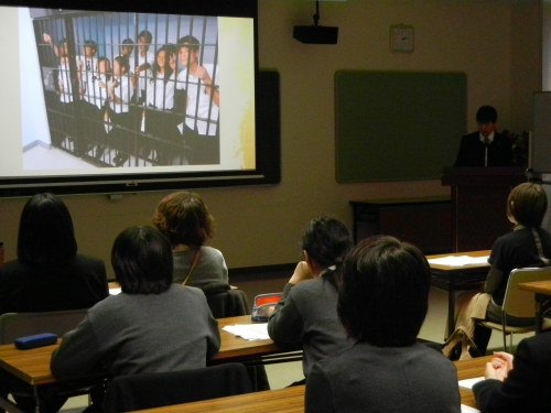 期末考査が修了した6日の午後、大会議室で「35回海外教育研修実施説明会」が行われました。参加希望生徒・保護者約55名が出席されました。本校独自の海外教育研修の概要から、生徒による体験発表、2か月前から行う事前指導、金銭面での話などを行いました。