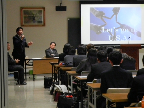 校長先生から「この海外教育研修も来年には35回となります。この説明会に参加されている保護者の方の中に卒業生がおり、その方が本校在籍中に参加させていただき、高校時代のすばらしい思い出になり、子供にもぜひ参加させたいと思い、説明会にきましたと話していただきました。」との、挨拶からはじまりました。