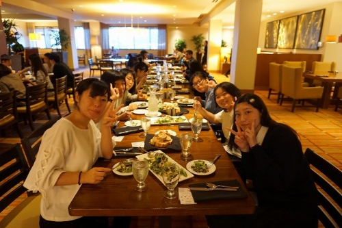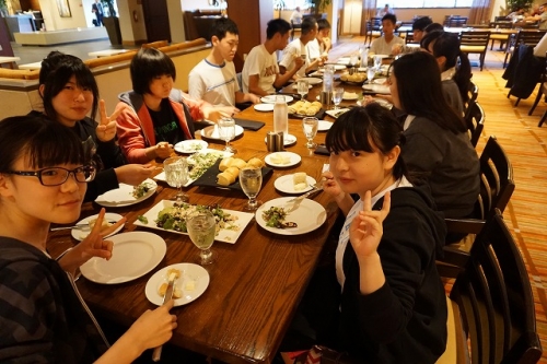 夕食はホテルのレストランでとりました。ジャズの生演奏が流れる大人な雰囲気の中でアメリカサイズのサラダや肉、デザートを食べました。食事の途中にはミュージシャンが生徒たちのリクエストに応えてディズニーの曲をジャズアレンジで演奏してくれました。非常に長い1日をお腹いっぱいで終えました。明日は、サンフランシスコ市内を1日観光します。
