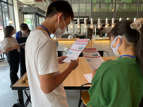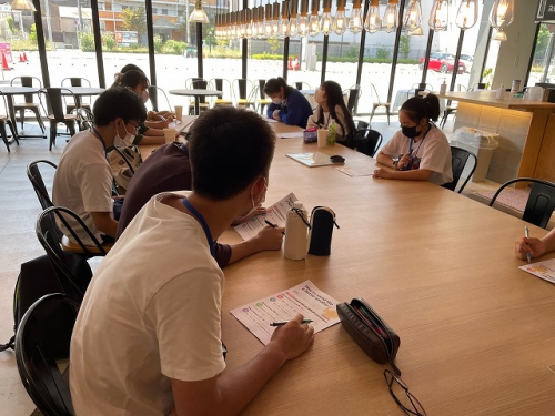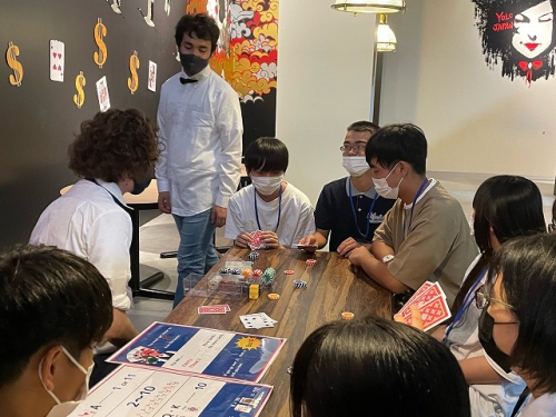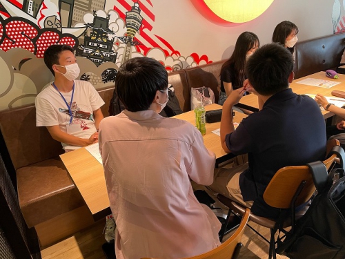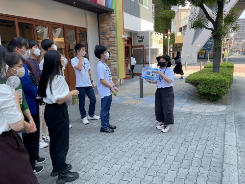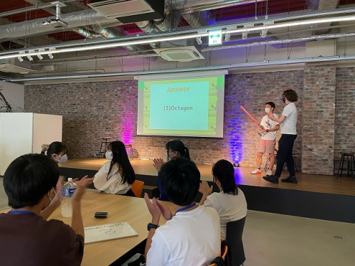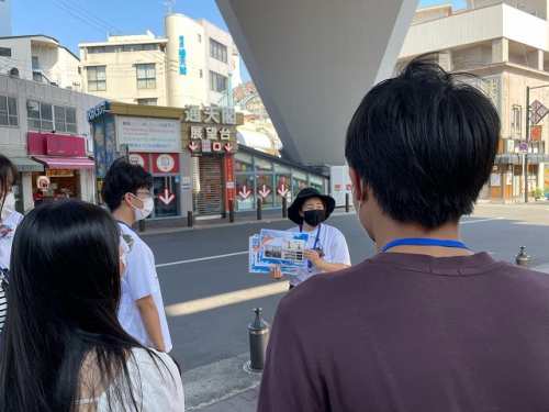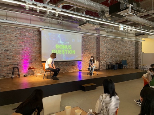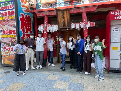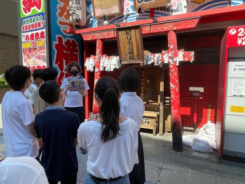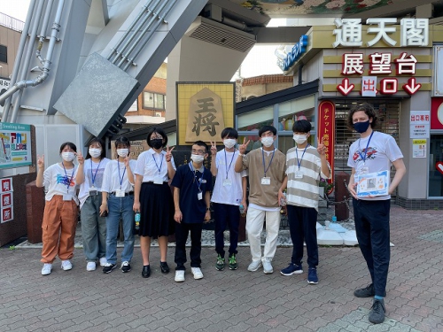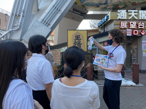 朝から新世界を歩いて回り、ビリケンさんや通天閣などに関する知識を英語で説明してもらいました。その後、新世界ツアーでの内容をクイズ形式で学びました。