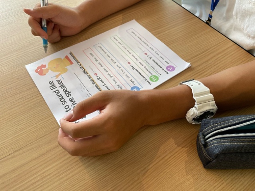 初日よりも生き生きとした姿を見ることができ、英語に少しずつ自信を持てるようになってきました。休み時間には講師の先生と話す生徒がいたりと、前向きに英語を話そうとしている姿勢がたくさんみられました。