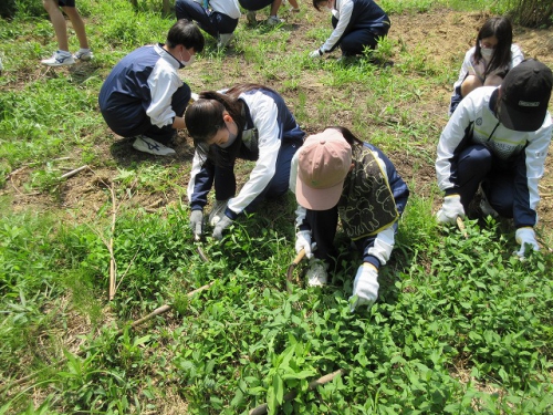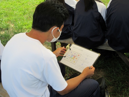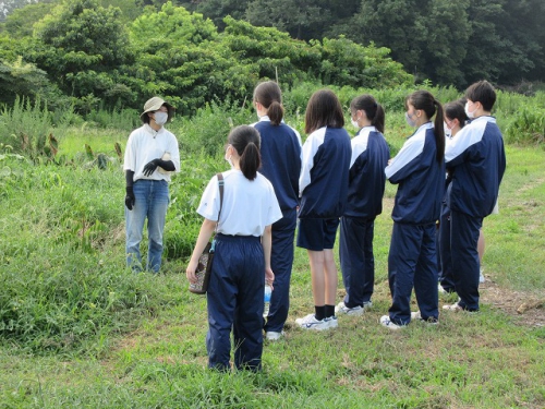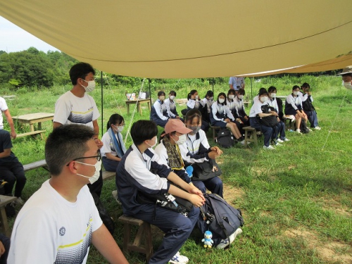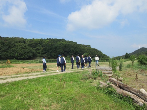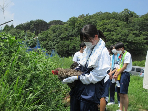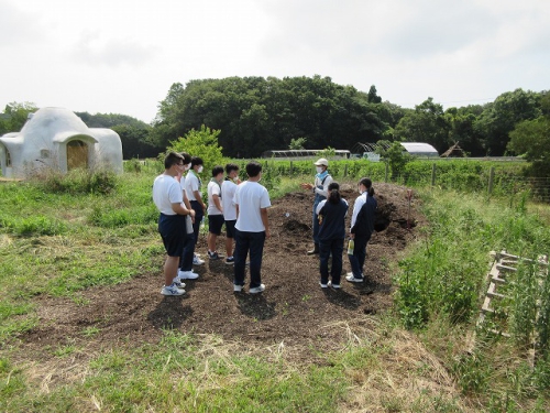 大変暑く、体験の開墾は見送りましたが、日に焼けながらも生徒たちは積極的に活動し、活発に意見を交わす姿がすごく印象的でした。農業を通して持続可能な社会の実現に向けた学びができ、誰一人取り残さない、誰ひとり取り残されないというSDGsの理念を身を持って体感する一日となりました。