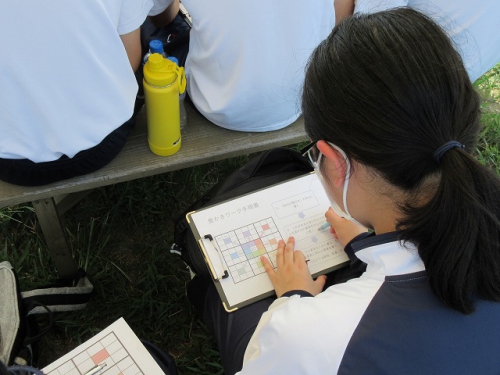 環境問題、食糧問題、エネルギー問題などにスポットをあてセミナーはスタートしました。今この地球上で起こっている問題として認識はしているもののあまり危機感はなく、行動に移せていないことがたくさんあることに気づかされました。体験では普段なかなか経験できないことも多く、生徒たちは不慣れながらも、積極的に活動していました。後半のグループワークでは、マンダラートを活用し豊かさについて個々に考えを深め、お互いに考えを共有しました。
