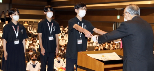 コンピュータ部部員達は、日頃の実力を発揮し、団体優勝3連覇・個人優勝6連覇を果たし、文部科学大臣賞を受賞しました。これで、15回の団体優勝を達成しました。「日本一強いチームより、日本一良いチーム」をスローガンに、日々の練習とともに、挨拶の実践にも取り組んできました。
