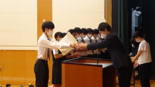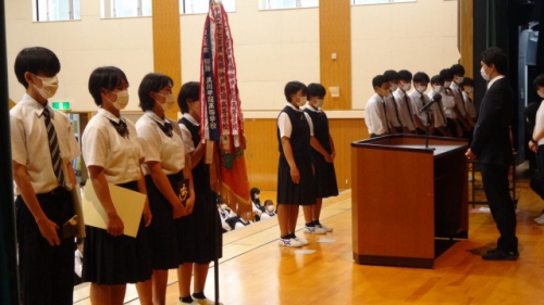9月1日(月)、2学期始業式に続き、各運動部・文化部の活躍に対して副校長から表彰伝達が行われました。各クラブの戦績結果を列記し、その功績を称えたいと思います。