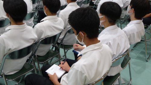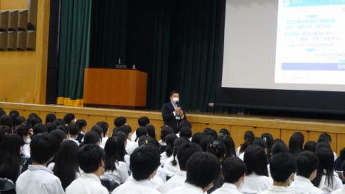 現在、3年生の就職に向けた面接練習や進学に向けて小論文の添削や、共通テスト対策講座などそれぞれの進路に向けて取り組んでいます。講話でも言われていたように、1年生もこの時期から自分の将来について考えてみてはどうでしょうか。夢の実現に向けての準備にフライングはありません。