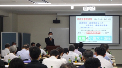 9月16日(金)10時30分から12時までの約1時間30分、学習塾の先生方を対象に令和5年度入試説明会を開催しました。毎年行っているこの説明会は、兵庫県下ので学習塾様を中心に、本校の取り組みをより深く知っていただくために実施しています。