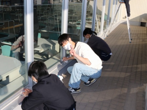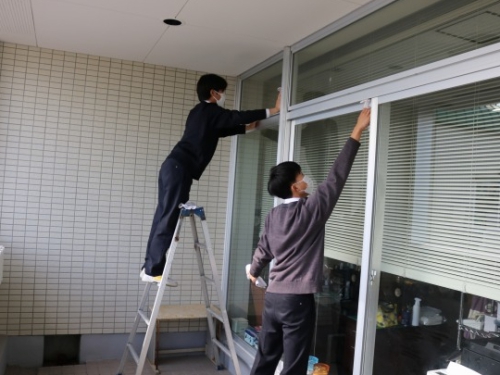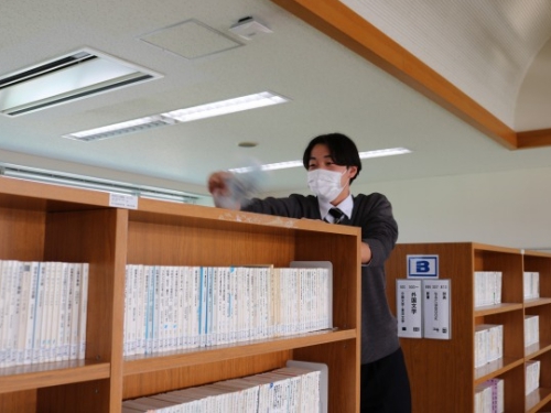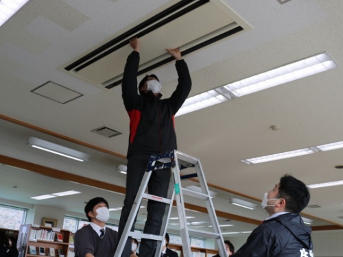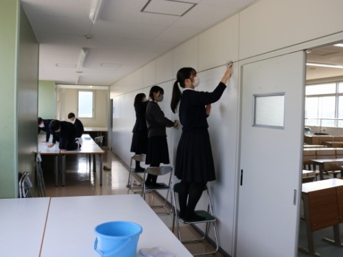 大学入学準備講座を午前中に終了し、昼食を終えた生徒たちが参加しました。小論文添削に面接練習と、日頃から指導してくださっている進学担当の先生方も参加しての清掃活動となりました。受験勉強中に使用したライブラリーなどの教室への感謝の気持ちを込めて取り組みました。掃除した後は、参加者全員で集合写真を撮って解散となりました。