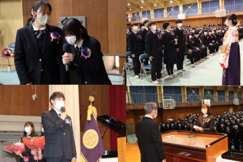 入学当初からコロナ禍だった3年生にとって、保護者の方々を交えた学校行事は本当に限られていました。しかし、卒業式という、高校生活最後の晴れの舞台を直接見てもらえることは367名の卒業生にとって非常に良い経験・思い出になったと思います。