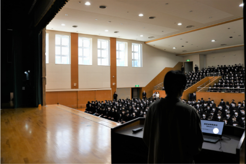 3月9日(木)、「卒業生による進路体験発表会」を行いました。今年度も卒業生に実際に本校まで足を運んでもらい、1・2年生全員の前で壇上に上がってプレゼンをする形で実施することができました。