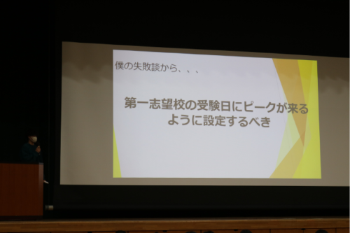 最後に進学指導担当の先生より話があり、「卒業生の話を聞いて『やらなければならない』と思うことは誰でもできる。そこにとどまらず、実際に行動に移して実践し、結果につなげてほしい」と締めくくりました。体験談を語ってくれた卒業生の皆さん、後輩の心に響く話をしてくれて、本当にありがとうございました。