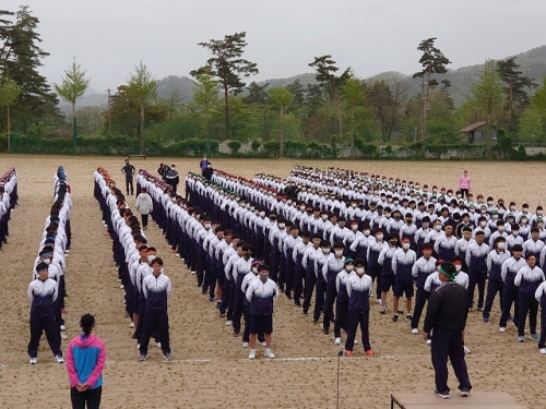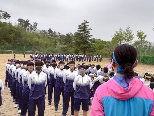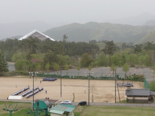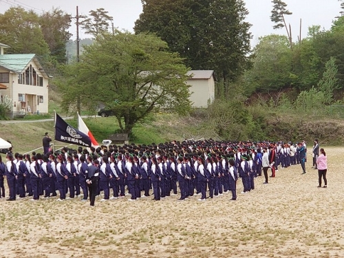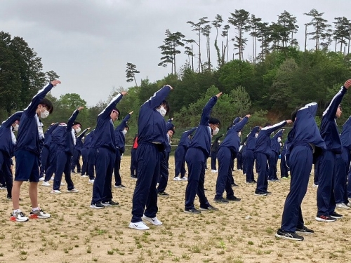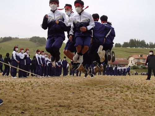 こちらの天気は曇り空。午後からの活動時、気温は13℃でした。活動の最後には、クラス対抗のチームジャンプで盛り上がりました。