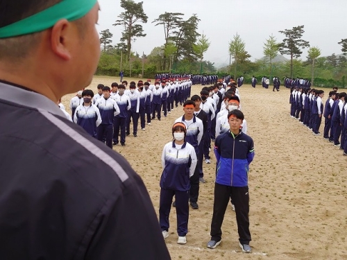 今はホームルームで今日の反省や明日への目標を話し合っています。