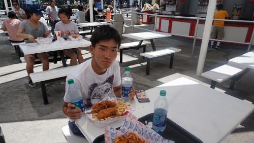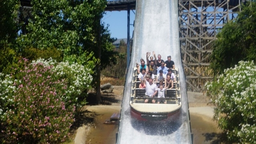 そのテーマパークは、サンタクララという地域に存在しており、普段生活しているモントレーに比べて日中は暑くなる地域です。空気が澄んでいるため日差しがたいへん強く、ローラーコースターやウォータースライダーなどのアトラクションを楽しみ、再集合した時には結構日焼けしていました。