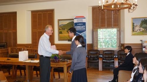 本日は、午前に授業を受けて、午後からはモントレー市長の表敬訪問、警察署と消防署の見学に行ってまいりました。