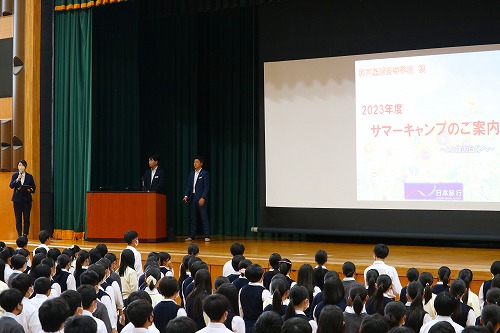1年生にとって高校生になって初めての夏休みを迎えます。そのような夏休みに今まで経験したことのない「体験型教育研修」、すなわち『星城サマーキャンプ2023』について、日本旅行様・JTB様の2社の方に説明会していただきました。