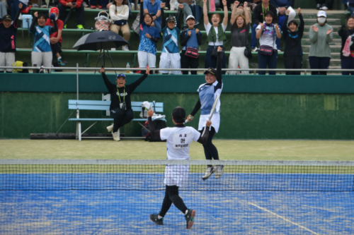 今大会より入場制限も緩和され、大勢での応援も可能となった中の試合でした。みんなの気持ちをこの一球に込めて戦おうと、選手も応援も一致団結して試合に挑みました。個人戦では前年度に引き続き、2ペアがインターハイに出場することができ、近畿大会には個人3ペアが出場します。保護者、OGなど多くの人の応援もあって、選手は勢いよくプレーすることができました。一人の力で勝てるわけではなく、多くの人の支えがあって戦えているのだと感謝の気持ちをもってプレーしていたと思います。