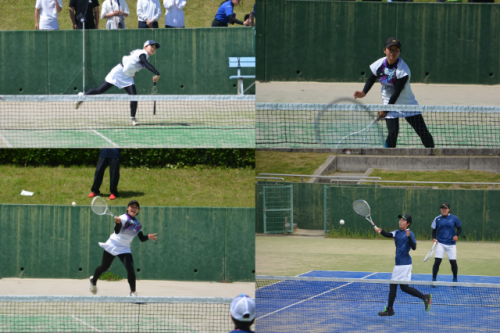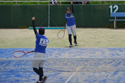 団体戦は6月2日(金)、3日(土)に行われる予定でしたが、2日の大雨により、試合は3日、4日に延期になりました。“個人戦での勢いをそのまま団体戦にも!”と、向かっていくテニスで戦いましたが、2位という結果で、団体戦でのインターハイ出場は叶いませんでした。