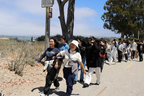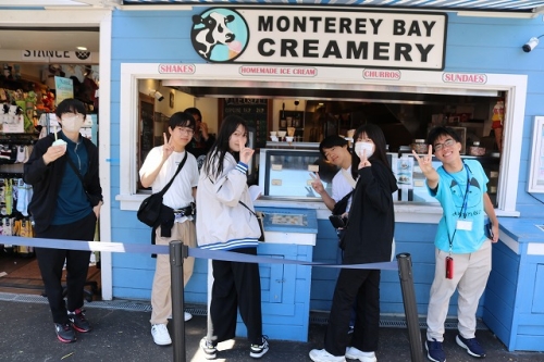 現地7日目を迎えました。今日も午前はいつも通り授業を受け、午後からは歩いてMonterey湾を臨むFisherman's Wharfに行きました。日本とは違って気温は20度。途中気持ちの良い海風を受け、砂浜をみんなで語り合いながら歩きました。