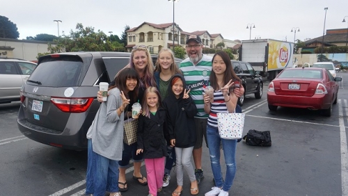 本日は、ファミリーと別れてロサンゼルスへと移動しました。ファミリーたちと思い思いにお別れをして、ついにモントレーを出発しました。生徒たちはみんな感謝と寂しい気持ちでいっぱいのようで、しばらく移動のバス車内は悲しみに包まれていました。ですが、500km以上の移動を経てロサンゼルスに到着すると、米国2番目の大都市ロサンゼルスの空気にまた元気が復活したようでした。