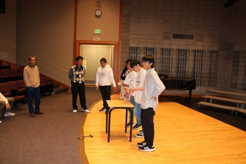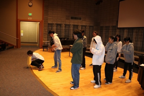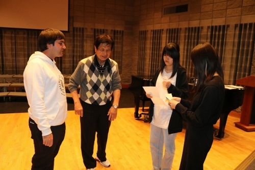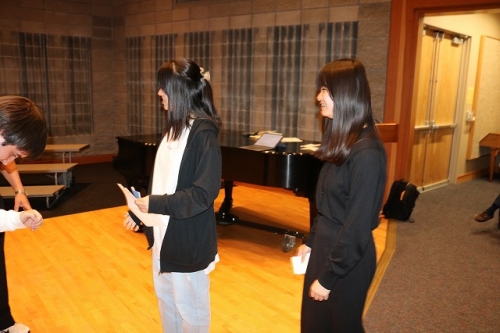 午後は、明日の修了証書授与式の行われるメアリー・ジョンソン・リサイタル・ホールにて、授与式とさよならパーティーのリハーサルを行いました。どのグループも熱心に練習を重ねていました。