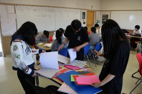 昨日の午前中の授業はホストファミリーに渡すサンキューカードを完成させました。生徒たちはファミリーと過ごした日々を思い出しながら素敵なカードを作成していました。