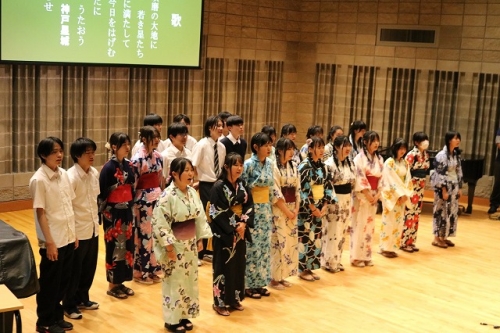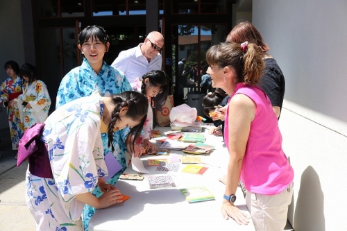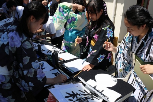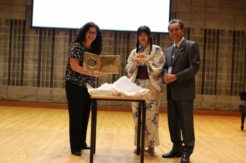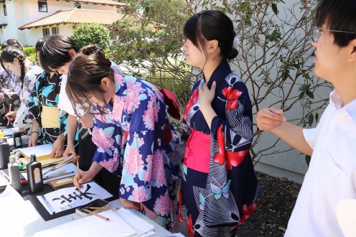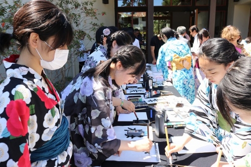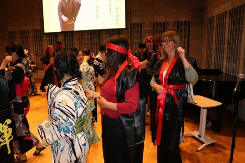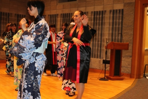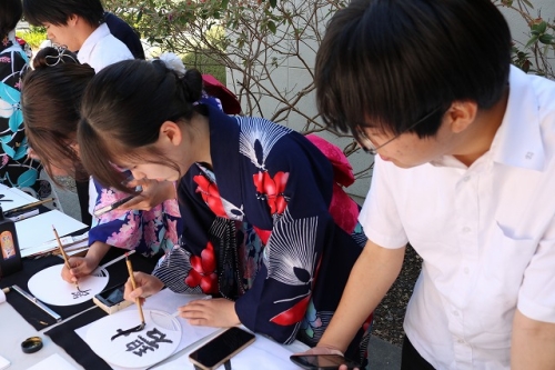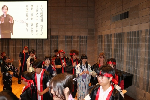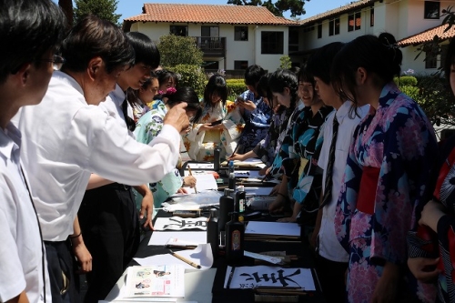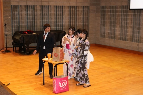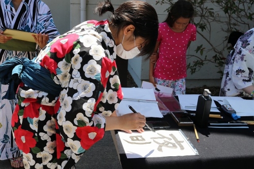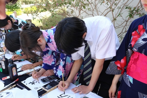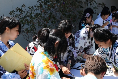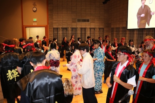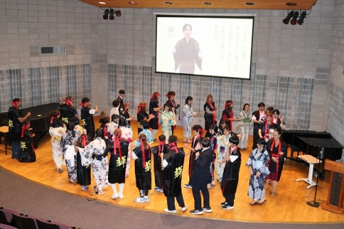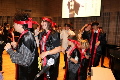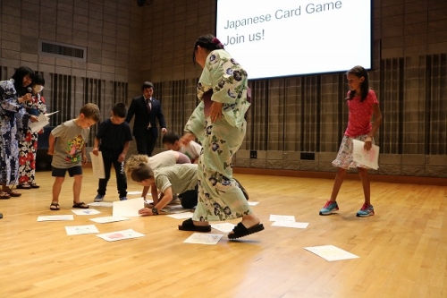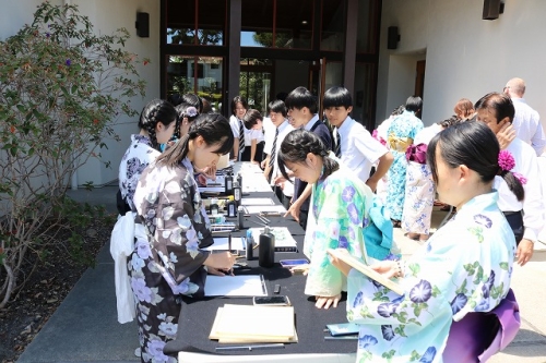 午後からはGraduation Ceremonyを行いました。生徒は感謝の気持ちを込めて、ホストファミリーをもてなし、折り紙や書道を一緒にしました。その後、生徒たちは一人ずつ名前を呼ばれ、卒業証書を受け取りました。一人一人の名前が呼ばれるたびにホストファミリーからは拍手と掛け声をかけて頂きました。また、全員で校歌を歌い、ビンゴやかるた、ジェスチャーゲーム、伝言ゲーム、歌や盆踊りを披露しました。どのホストファミリーも喜んで、非常に盛り上がるGraduation Ceremonyとなりました。