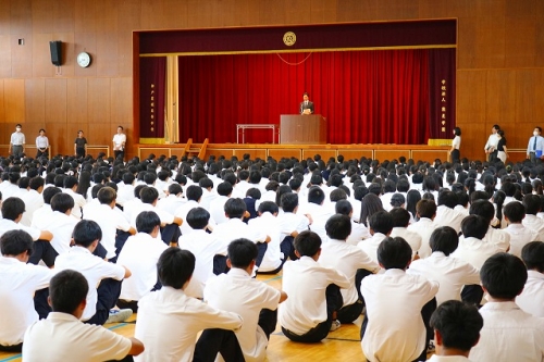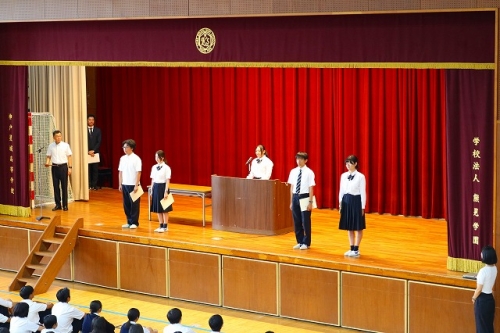 9月6日(水)の1校時目、避難訓練および学級委員・生徒会役員任命式を行いました。