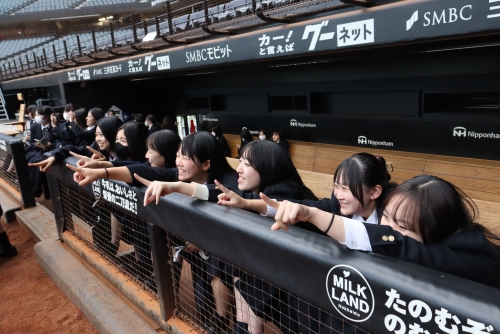エスコンフィールドでは、日本ハムファイターズのチアリーディングチーム、ファイターズガールのメンバーの方にガイドをして頂きながら見学ツアーに参加しました。