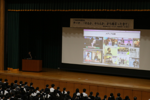 自身の口癖でもあった「やるか、やらんか。」を軸に、起業する過程で様々な努力や苦労を乗り越え、「日本の若者に選択肢を示したい」という思いのもと、話をしていただきました。