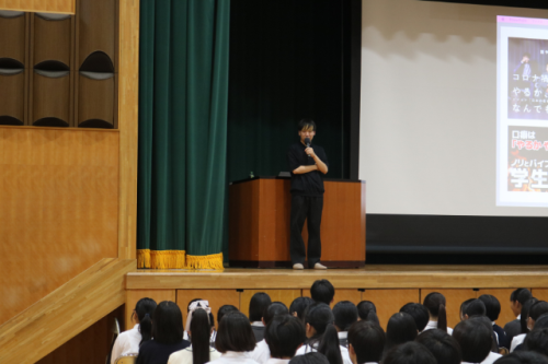 近畿大学農学部を卒業後、同大学大学院実学社会起業イノベーション学位プログラムで学び、起業家でもある西奈槻氏に本校にお越しいただき、大学時代や起業に至った経緯、コロナ禍で社会的不自由を強いられたときに、学生である自分がどのようなことを考えていたかなどについてお話をしていただきました。