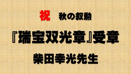 令和5年度 秋の叙勲において 本校の前教頭 現在 学校法人熊見学園理事の柴田幸光先生が、『瑞宝双光章』を受章されました。