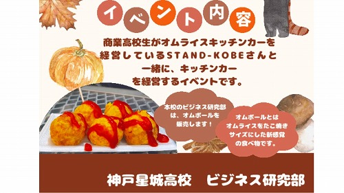 もちろん、神戸星城高校のビジネス研究部も参加し、オムライスをたこ焼きサイズにした新感覚の食べ物「オムボール」を販売します‼