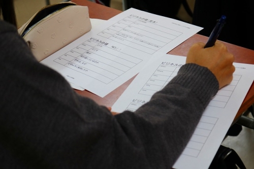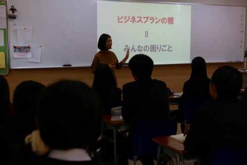 だれもが知る商品も、身近な「困りごと」から発明されたものが多くあることを知り、生徒たちも自分や身の回りの小さな困りごとを探し、真剣にビジネスの種を考える姿が見受けられました。また、最後に数名の生徒が発表を行いました。ビジネスの種になり得る「困りごと」をクラスで共有し、生徒たちは良い刺激を受けていました。