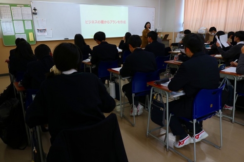 11/15(水)6校時目、経営者の方にお越しいただき、特進Sコースの1年生に向けて授業を行っていただきました。本日は全7回のうち第5回目となる授業で、身近な「困りごと」から”ビジネスプランの種”を見つける活動を行いました。