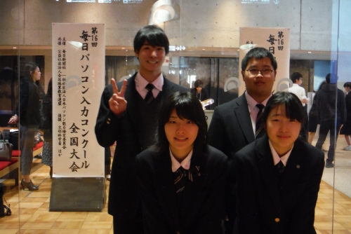 この大会は小渕内閣のe-Japan戦略構想の一環として日本人全てがパソコン操作ができるようになることを目指して始められました。参加者も幼稚園児から高齢者まで様々です。本校のコンピュータ部は、数字・記号の高校生の部に出場しました。全国大会は、全国各地で実施された予選を勝ち抜いた10名に出場権が与えられます。本校からは全国最多、10名中4名もの生徒が出場権を獲得しました。