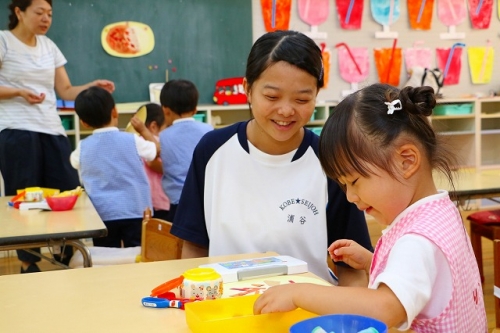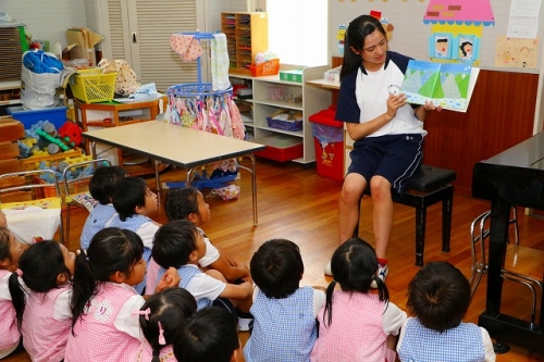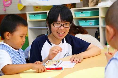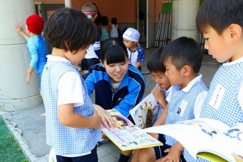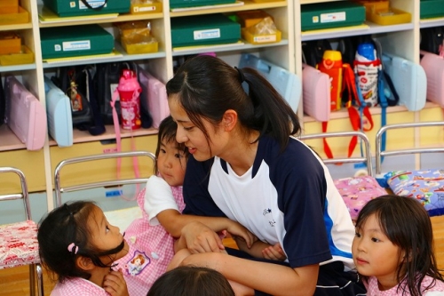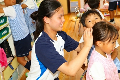 ・去年は老人ホームで、今回は幼稚園でインターンシップ^を体験しました。老人ホームの介助員の方も幼稚園の保育士の方も、観察力に判断力とコミュニケーション能力の必要性を感じました。これからも社会貢献を通じ自己成長したいと思いました。