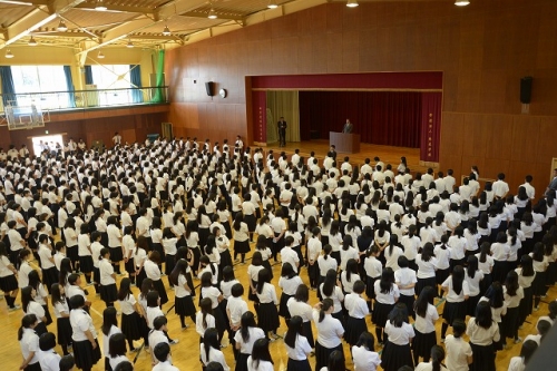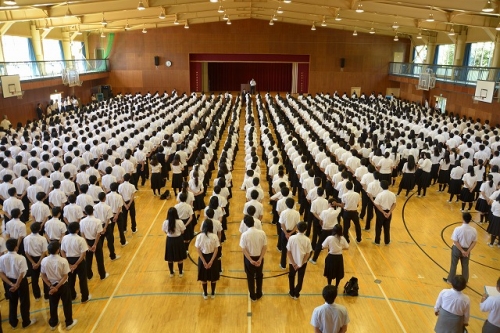 9月1日(金)、二学期始業式が行われました。「生徒皆さんが、元気に登校してくれていることがうれしく思います。大きな声で二学期の挨拶をしましょう。おはようございます」との校長先生の言葉に、全校生徒の大きな挨拶の声で、始業式が始まりました。夏休み中、皆さん一人一人が有意義な夏休みを過ごしたことと思います。