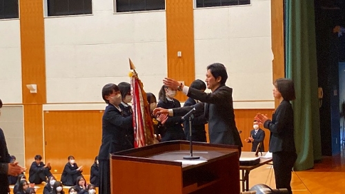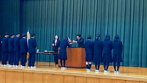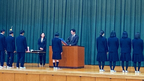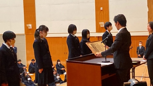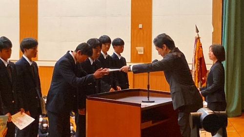 また始業式の後、続けて表彰伝達式を行いました。優秀な成績を収めた運動部・文化部の生徒に表彰と労いの言葉がありました。