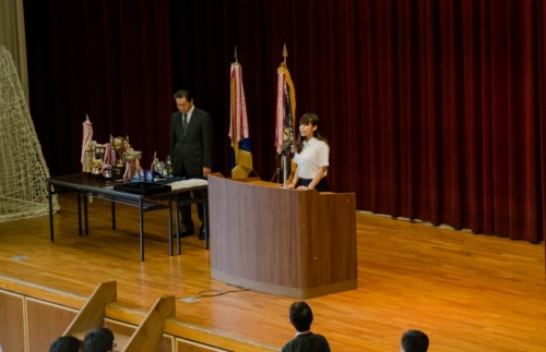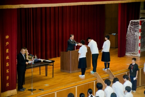 旧生徒会役員に対し、ねぎらいの言葉と功労賞が贈られました。