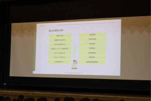 この度はお忙しい中、貴重な時間を使って講演をしていただいた、SMBCコンシューマーファイナンス株式会社の牟田様、本当にありがとうございました。契約や金融トラブルを考えるにあたって、具体例として身近なものから、深刻なものまで挙げていただき、生徒たちもメモを取りながら、自分事として捉えることができたと思います。また手元の資料を元に、内容を振り返りながら、新学期まで残り数週間ですが、気持ちを引き締めて過ごしましょう。