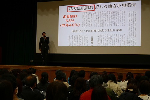 本校講堂では「進学」について、大会議室では「就職」について各資料を基に、卒業後の進路実現における生徒・保護者の具体的な動きや考え方などについて、進学・就職に分かれて保護者様に説明しました。