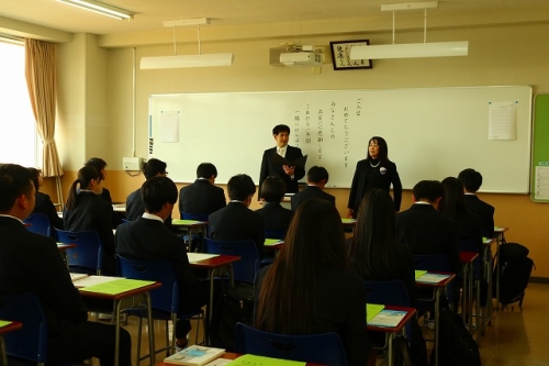 今後の予定は、4月8日(月)に全校生が集まる始業式、9日(火)は課題・実力考査、10日(水)は校内オリエンテーション、11日(木)は健康診断、12日(金)は避難訓練・学級委員任命式 となっています。来週から本格的に高校生活が始まりますので、入学のしおり・生徒手帳「良志久」・本日の資料等の内容を頭に入れ、良いスタートがきれるようにしましょう。