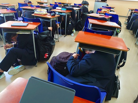 避難訓練・学級委員任命式・表彰伝達