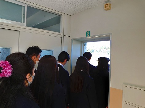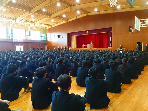 4月12日(金)に避難訓練・学級委員任命式を行いました。1校時目に地震が起きた想定で全校生徒が避難訓練に参加し、体育館に集合しました。その後、第一学期学級委員が任命され、校長先生から講話がありました。