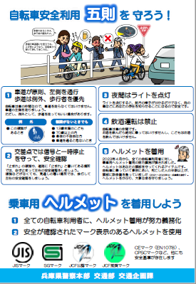 兵庫県内で自転車による重大事故が増加しています。県警からのチラシを見てお子さまとお話をしてください。万が一のためにも自転車向け保険の加入もお勧めします。