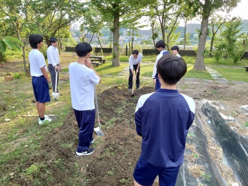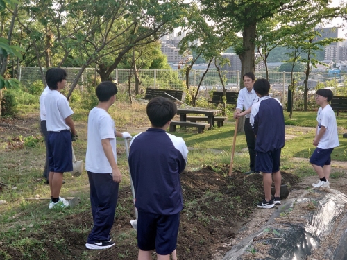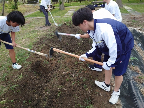 個々によって、プレゼンテーションする内容を検討していますが、この班は食料に関するプレゼンテーションを行うことに決めたので、その一環として「農業体験」を実施しています。