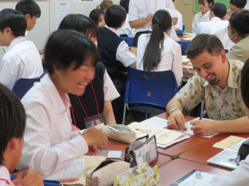 通年型英会話プログラム ~特進A・Bコース~ ■2024-06-19 写真は、自動的にスライド表示されます (ドラッグしてスライドも可) 今年も株式会社ISA様のご協力のもと、特進A・特進Bコースを対象とした通年型英会話プログラムがスタートしました。計8回、直接外国人の先生が教室まで来て、少人数の英会話トレーニングを行います。文法や単語などの座学だけではなく、国際化する現代においては英語を使ったコミュニケーション能力が問われます! 楽しく、リアルな英語を体験しながら学ぶことができ、生徒も和気藹々とした雰囲気の中で率先して会話に参加していました👓✨📚 次回は明日の6/20,21になります。またinstagramやHPなどでも様子を発信していきます。
