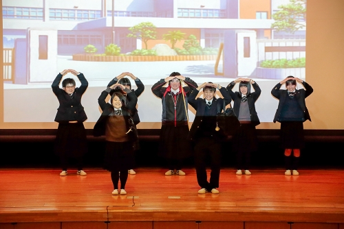 生徒会 オープンハイスクール手伝い(発表、寸劇、制服ファッションショー、案内等) 講堂