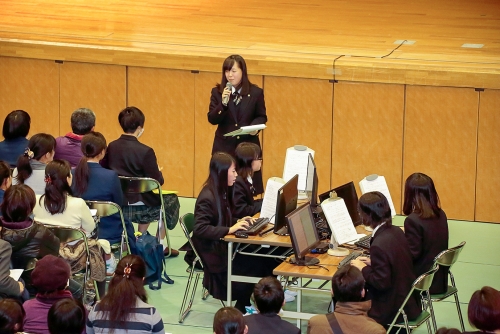 コンピュータ部 オープンハイスクール手伝い(タイピングのデモンストレーション) 講堂